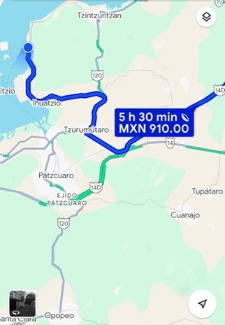 Usar libramiento Cuitzeo Pátzcuaro y salir en salida Pátzcuaro dando vuelta en Glorieta de Tzurumutaro rumbo a Quiroga, en Sanabria dar vuelta a la izquierda rumbo a Ihuatzio Cucuchucho y llegan a Hacienda Ucazanaztacua.